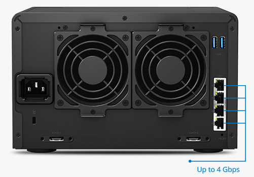 DS1515 搭載四核心處理器,結(jié)合 2GB DDR3 內(nèi)存,在啟動(dòng) Link Aggregation 下,可帶來(lái)每秒讀取過(guò) 403.77MB、寫(xiě)入過(guò) 421.85MB 的卓越傳輸效能1。 強(qiáng)大的 DS1515 硬件配備可處理大量數(shù)據(jù)存取需求,并為所有聯(lián)機(jī)的客戶端裝置持續(xù)提供高效表現(xiàn)。