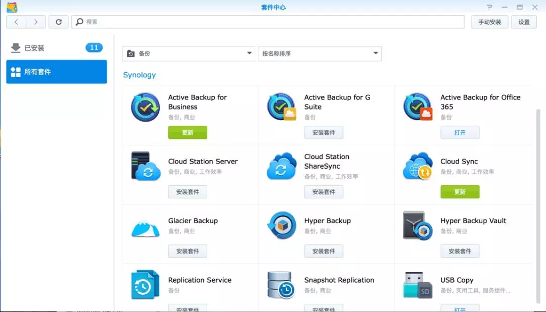 這些備份套件都可以在群暉套件中心免費下載: